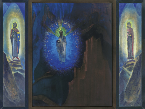Work on the Living Ethics demanded great tension and effort of Helena Roerich. Messages from afar were not only in words but often in mental images. She sketched them. These drawings are the evidence of Helena's conscious contact with the world of higher state of matter. Many of the drawings of Helena Roerich became the basis of paintings of Nicholas Roerich. Roerich called his paintings "artistic commentary" to the Living Ethics.