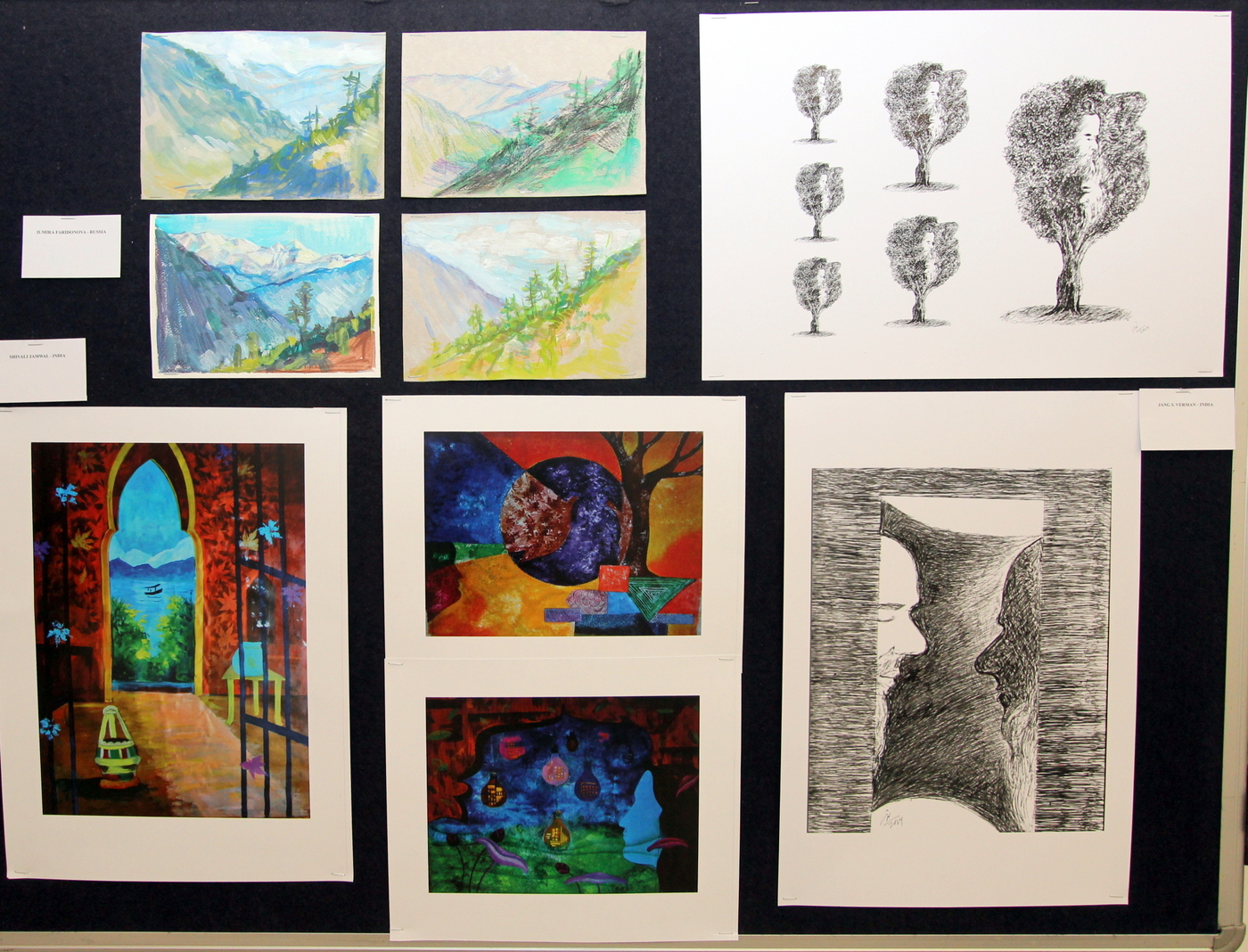 In the Exhibition took part artists from India - Balwant Singh Baloria, Jang S. Verman, Mukta Gupta, Dr. Vandana Malhotra, Dr. Alisha Sharma, Bharat Bedi, Prabhinder Singh Lall, Harsh Inder Lumba, Leeza, Sangita Sharma, Mehak Sharma, Surbhi Mahajan, Shivali Jamwal, Komal Kaur, Priya; from Russia – Lyudmila Kirsanova, Elena Yakovleva, Ilmira Faridonova, Nadezhda Kobzistova; as well as Suzlee Ibrahim from Malaysia and Bandhita Worasri from Thailand.