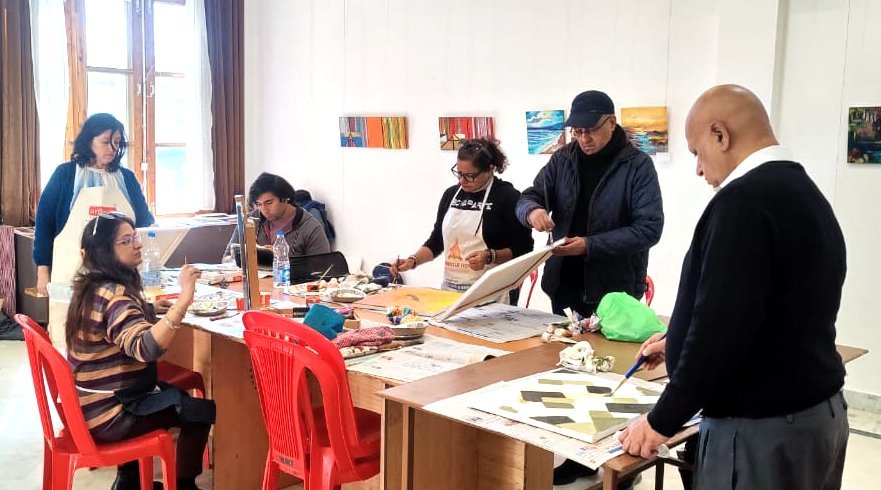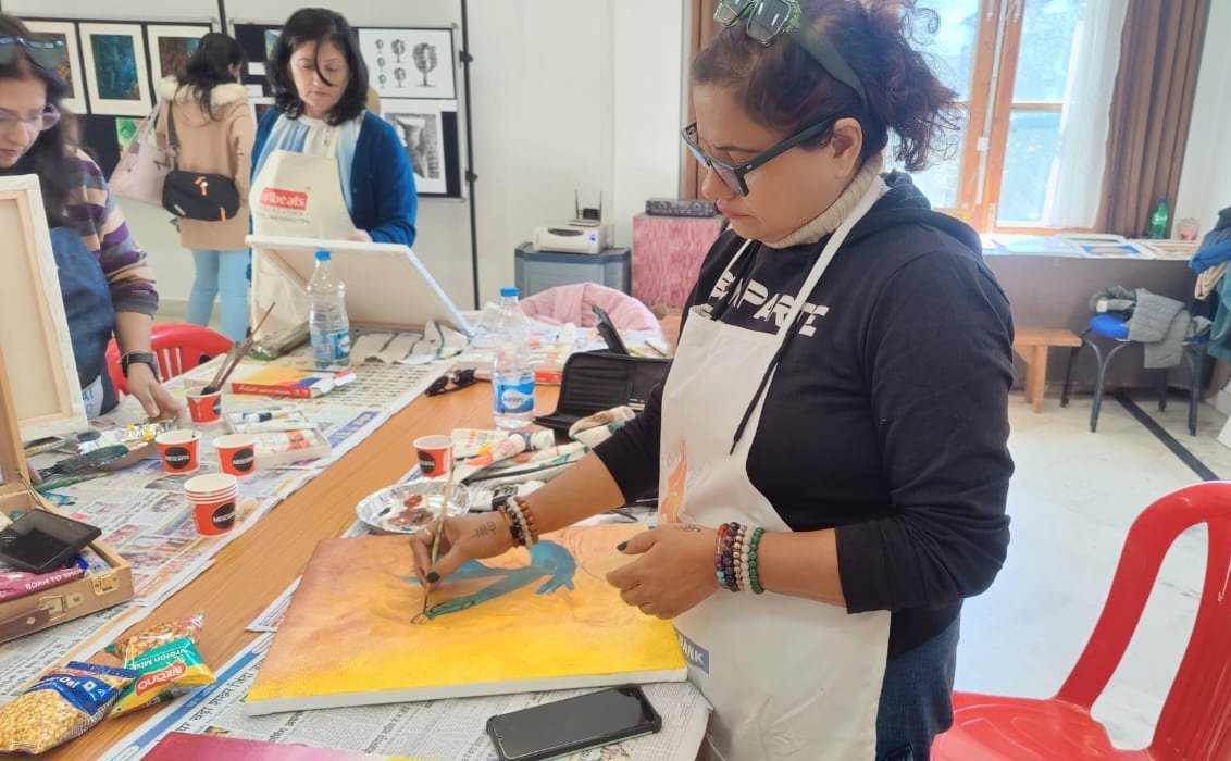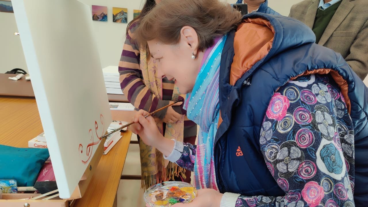 During the Exhibition, artists who were able to come to Naggar in person organized a creative Art Camp at the Roerich Estate, inviting everyone to participate. Dr. Vandana Malhotra, coordinator of the artists' camp, gave the honor of opening the workshop to the Curators of the Roerich Trust, Larisa Surgina and Suresh Kumar. Such events are often held at the IRMT, giving visitors the opportunity to touch the mysteries of the creative process and artists to share their creative discoveries.