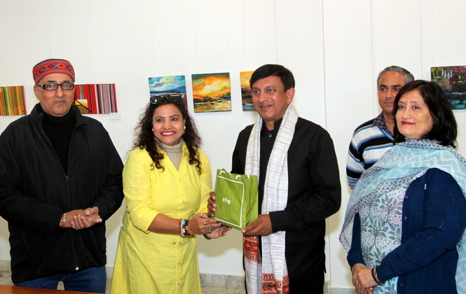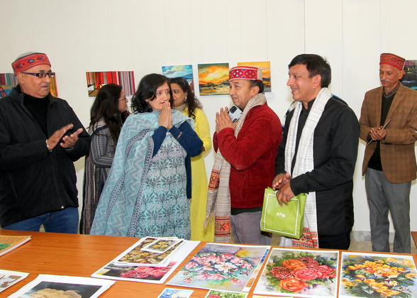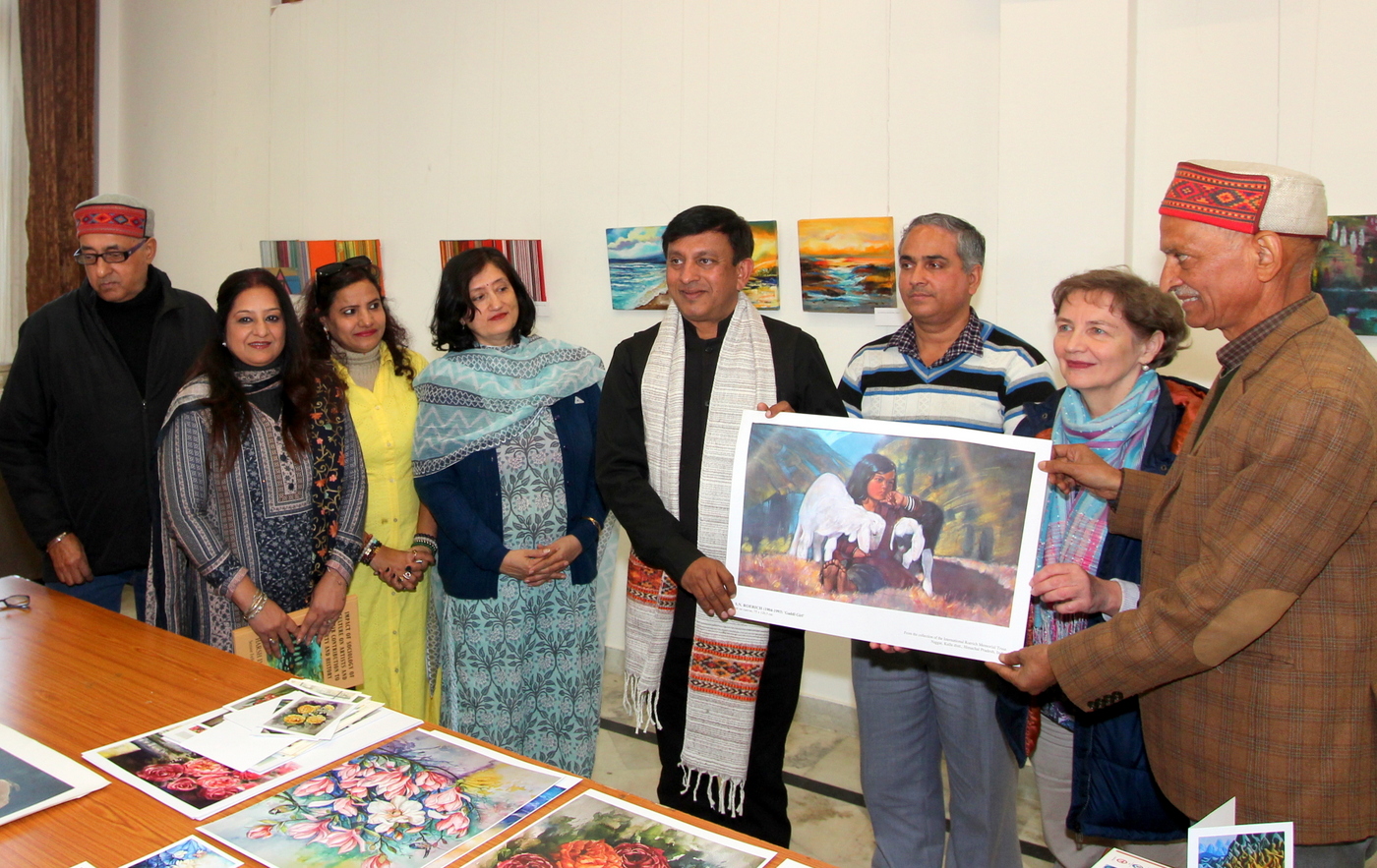An International Art Exhibition organized by the Artfort India, Chandigarh in collaboration with the International Roerich Memorial Trust (IRMT) opened on November 14 in the IRMT Exhibition Hall. The Chief Guest at this remarkable event was Mr. Nakul Khular, Award of Excellence Vijeta, director of the renowned Baragarh Resorts & Spa, IHСL SeleQtions, Manali. The opening of the exhibition was also attended by Suresh Kumar, Indian Curator of IRMT, Larisa Surgina, Russian Curator of the IRMT (on the direction of the ICR, Moscow), artists Prabhinder Lall, Dr. Vandana Malhotra, Sangita Sharma, Bharat Bedi and many others.