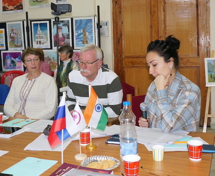 At the beginning of the meeting, Indian Curator Suresh Kumar and Russian Curator Larisa Surgina gave welcoming speeches. They welcomed the participants and guests of the conference on behalf of the Trust, expressing their hope that the pressing issue of cultural protection, close to the hearts of all those present, would be one of the conference's key topics and enable participants to reconsider Roerich's ideas and their relevance in the modern world. They firmly hoped that the conference would provide an opportunity for profound reflection, enabling participants to reconsider the prophetic ideas of Nicholas Roerich with a heightened sense of awareness, recognising their critical and undeniable relevance to the healing and harmonisation of our troubled modern world. Dr Olga Karaseva, an orientalist and assistant to the Russian Curator of the IRMT, was both the moderator and interpreter of the conference.