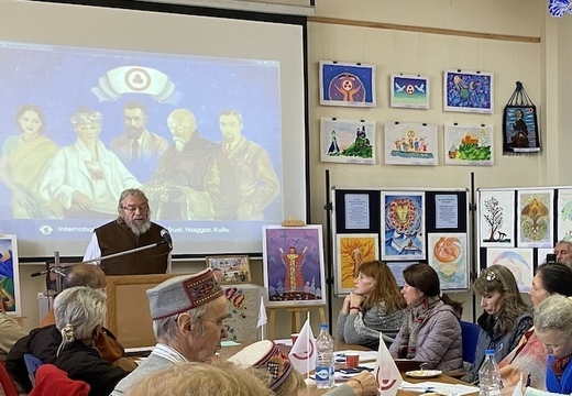 The presentation by Christian Knöfel from Switzerland and Carol Fraser, a British artist and his partner was an important highlight in terms of understanding the legacy of Nicholas Roerich. In the report, Mr Knöfel skilfully analysed the challenges facing the modern world, against which the ideas of this great humanist are particularly relevant. He noted that today, humanity is confronted by aggressive global conglomerates that seek to exert complete control over our resources and daily lives by imposing a cult of consumption and competition. Against this bleak backdrop of endless wars robbing us of confidence in the future and of education losing its spiritual foundation, Roerich emerges as a visionary offering an alternative path. His mission is to lead humanity towards the light based on fundamental values. His ideas about achieving peace through culture and counteracting destruction to create a harmonious society, where each person's freedom and responsibility are inextricably linked to inner spiritual growth and a careful attitude towards the Earth and the cosmos, take on new meaning today.