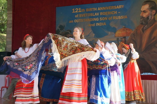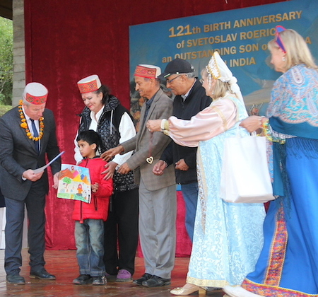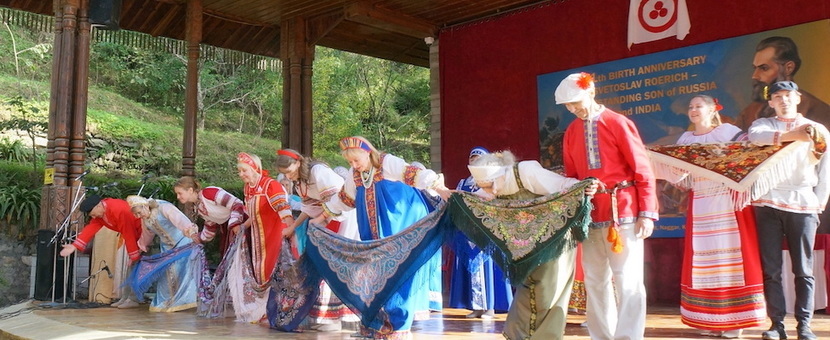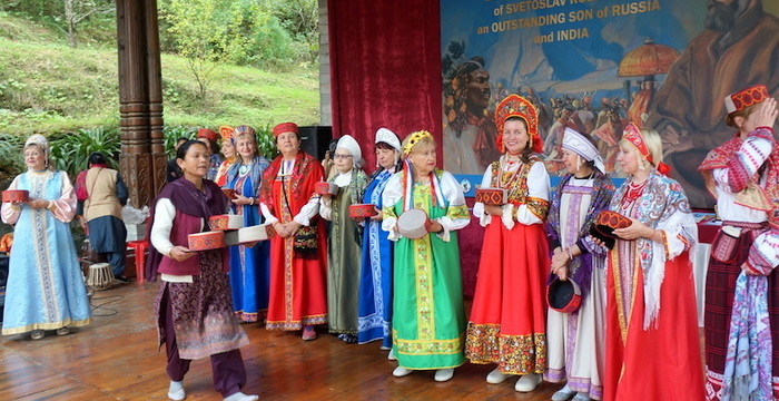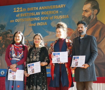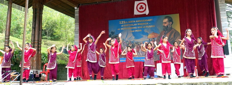 The audience was thrilled to be immersed in this cultural extravaganza. First, they enjoyed traditional music and dance, colourful costumes, and folk songs and dances representing India as a whole, as well as the local Kullu Valley. Next, Russian songs prepared by volunteers, teachers and students from the Academy were performed, transporting the guests to the homeland of the Roerichs — Russia. The celebration concluded with a performance of Russian folk dances by the Russian guests, showcasing their lively beauty.