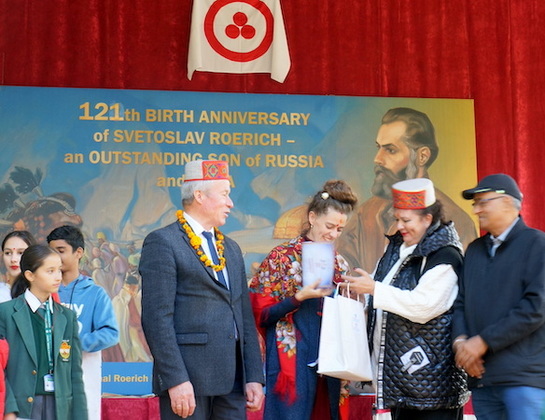 The guest of honour expressed his deep gratitude to India and its people, as well as to all the Roerich Trust employees for their reverent and respectful attitude towards the legacy of the great Russian artist. In turn, he paid tribute to Indian culture, which had inspired Nicholas Roerich throughout his life and had become an integral part of his work.