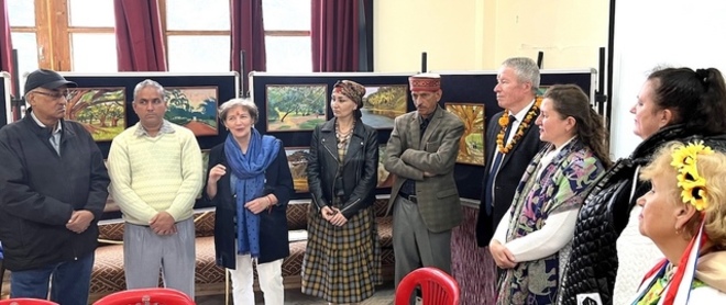 The artist received a special birthday gift in the form of two exhibitions, which opened in the IRMT Exhibition Halls on this day. The first exhibition presented to the audience was a collection of photographs by the photographer Atul Bhardwaj, titled 'Inspired by Naggar'. During the tour, the photographer emphasised that his fascination with Naggar began with the Roerichs' legacy. For Bhardwaj, Naggar is first and foremost the home of a great family, which is why he has spent many years seeking to capture its spirit in his photographs. His works capture the wonderful, almost mystical, natural and atmospheric phenomena of the Himalayas that are accessible only to the attentive eye. With no less sensitivity, he presents portraits of local residents and Russian volunteers of the ICR, whose bright, traditional costumes particularly impressed the photographer. Bhardwaj's profound vision and 'kind eye' enabled him to capture the essence and soul of Naggar, arousing keen interest among all those present.