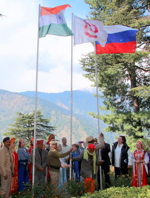 The symbolic unity of cultures inherent in the spirit of the Roerich Estate was vividly reflected in the important ceremony of raising the flags of India and Russia, as well as the Banner of Peace. During the Roerich festivals at the IRMT, the raising of the national flags of India and Russia embodies the deep and long-standing cultural and spiritual ties between the two countries. This emphasises the special status of the Roerich Estate in Naggar as a Russian-Indian cultural centre based on the Roerich family's ideas, and confirms the commitment of both sides to preserving and developing this heritage. Meanwhile, raising the distinctive Banner of Peace, with its symbol of trinity, is a powerful visual manifestation of the universal idea that culture is the cornerstone of civilisation and peace. In the context of the anniversary year of the Roerich Pact, this act took on special planetary significance, affirming that cooperation and the protection of beauty and culture are essential for lasting peace. It was fitting that the ceremony was blessed by the revered pujari, Sri Jaidev Acharya.