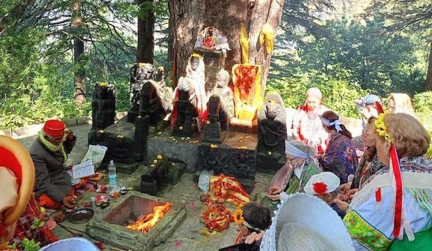 The puja took place in a unique open-air temple and museum located next to the Roerichs' house. Under the canopy of a mighty four-trunk pine tree here stands the revered statue of Guga Chohan, a deity, hero and patron of the Kullu Valley. Discovered by the Roerichs on the grounds of the Urusvati Institute, he is depicted in Nicholas Roerich's paintings. During the puja, the sacred murti statues were bathed in sunlight, with the sparkling, snow-capped, double-peaked Mount Gepang – or 'Mount M' as the Roerichs called it – providing a majestic and inspiring backdrop. This mountain is a symbol of purity and higher motives. Thus, the peace ceremony in Naggar became a powerful symbol of unity between Indian traditions, Russian heritage and the universal principles of the Roerich Pact.