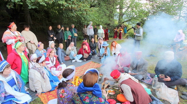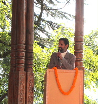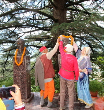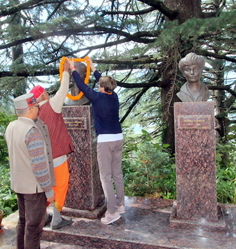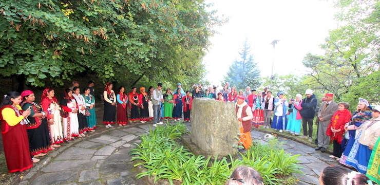 The main day of the festival, 9 October, began as always at Nicholas Roerich's Samadhi, the place of his cremation where a large memorial stone stands. Once a year, on the artist's birthday, a Hindu prayer for peace called the Shanti Puja is held here. Surrounded by high Himalayan peaks and under a canopy of mighty green cedars, guests from Russia, India and other countries join priest Shri Jaidev Acharya from the Krishna temple to offer heartfelt gratitude to the Russian 'Maharishi Nicholas Roerich, a great friend of India' and sacred prayers for harmony and prosperity throughout the world.